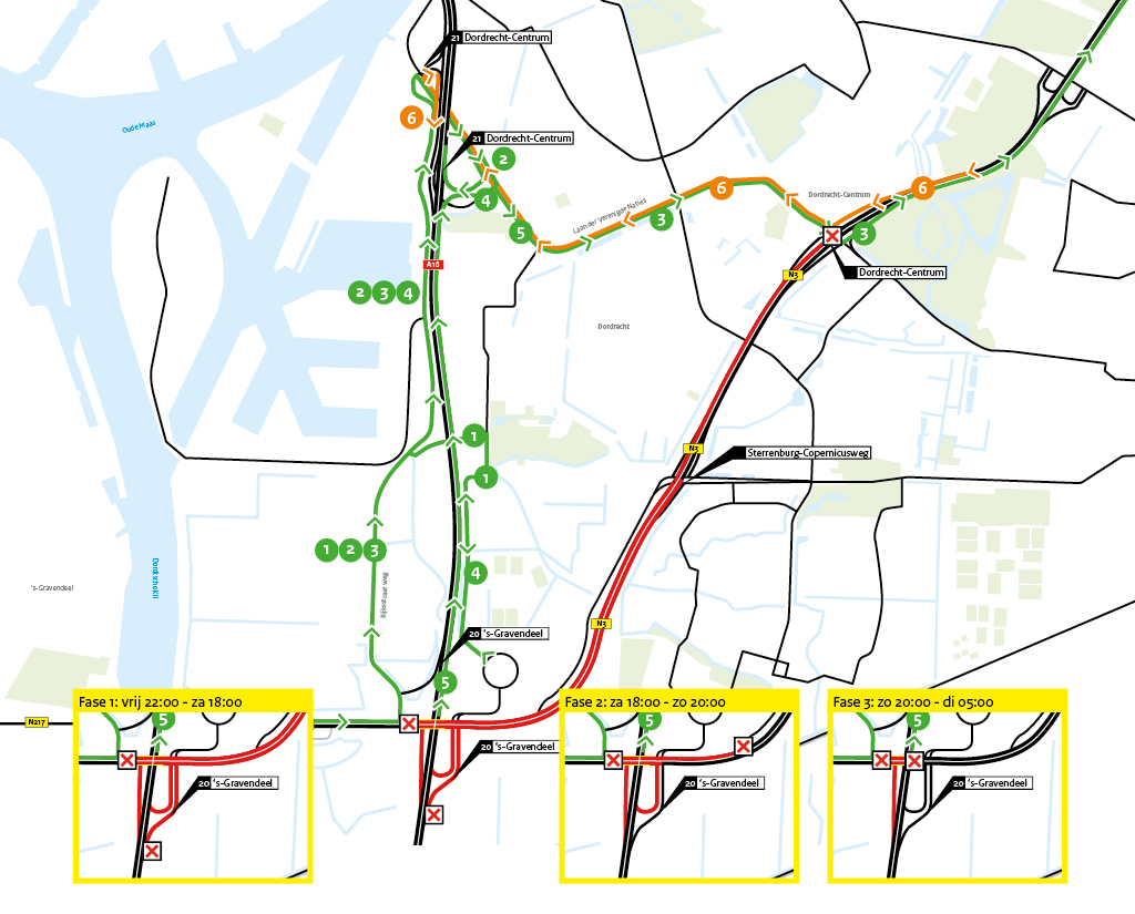 Verkeer vanuit Breda naar Papendrecht, kan het beste omrijden via de A16 en de A15. Afrit 20 ‘s-Gravendeel is afgesloten. Andersom geldt dat verkeer vanuit Papendrecht richting Dordrecht/Breda omrijdt via de A15 en A16.